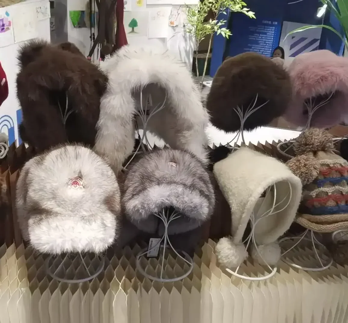 Studio designs, fluffy products, made from plush fabric, including rabbit ears, bear ears, and plush hats.